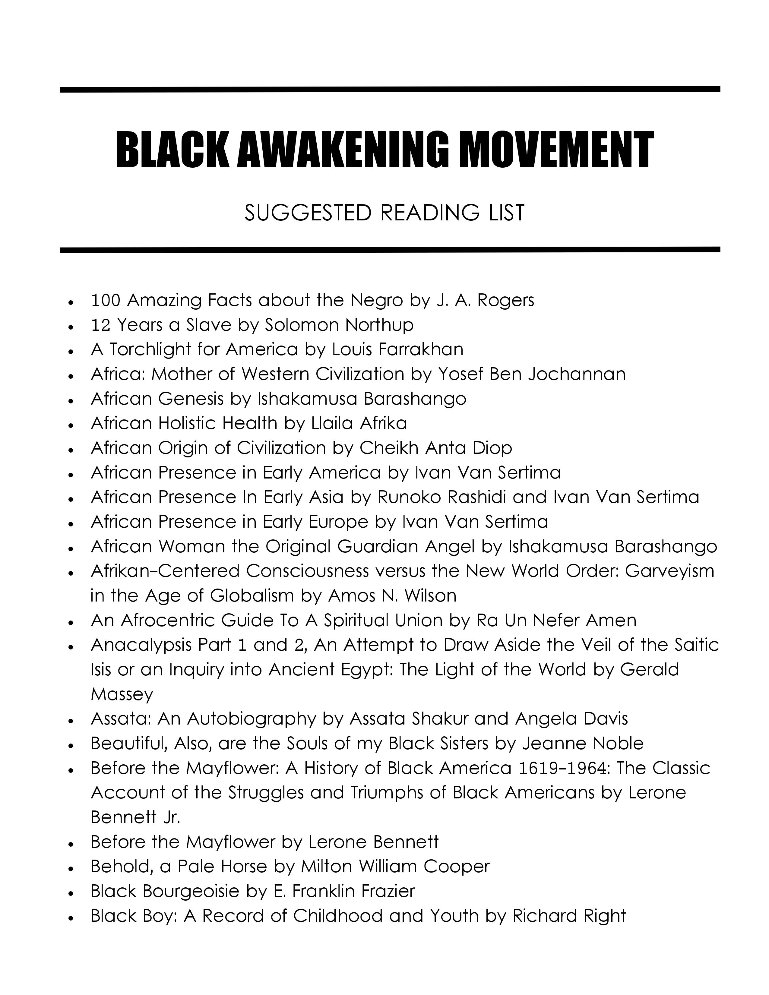 Click Here for PDF: Black Awakening Movement Suggested Reading List