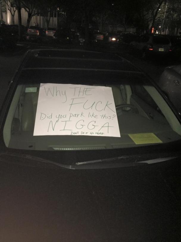 Offensive Note on Lisa’s Car 1-17-15